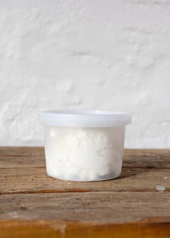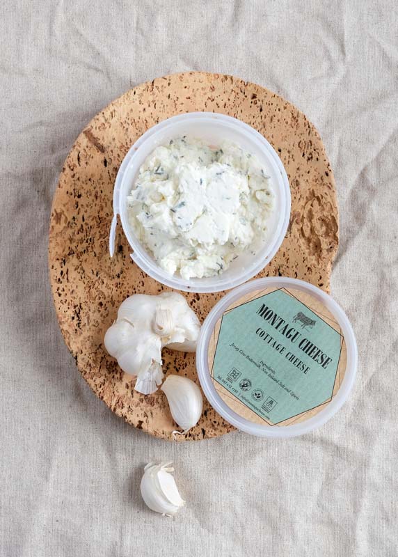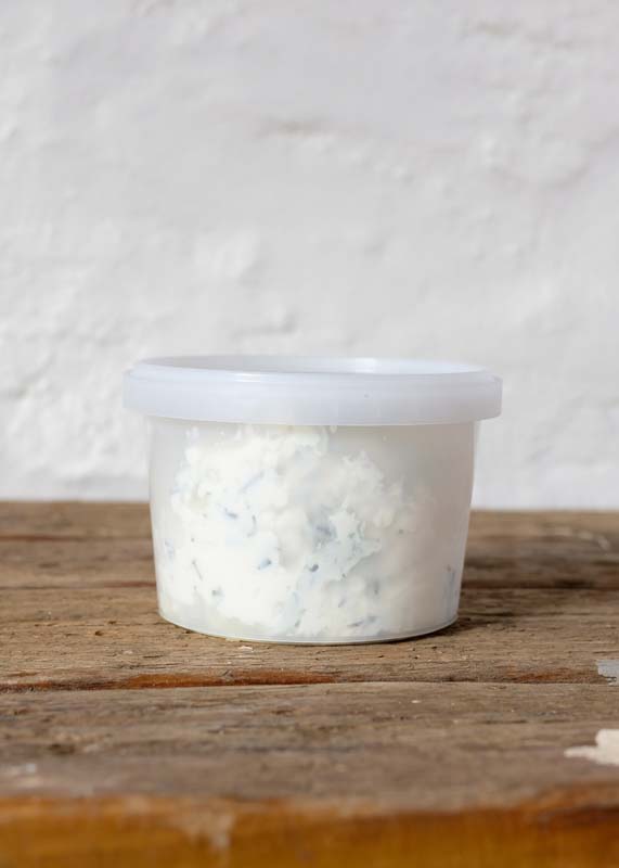 Our cottage cheese is made from pure buttermilk, with added non iodated salt and herbs/spices. It is low in acidity and fat, delicate and creamy